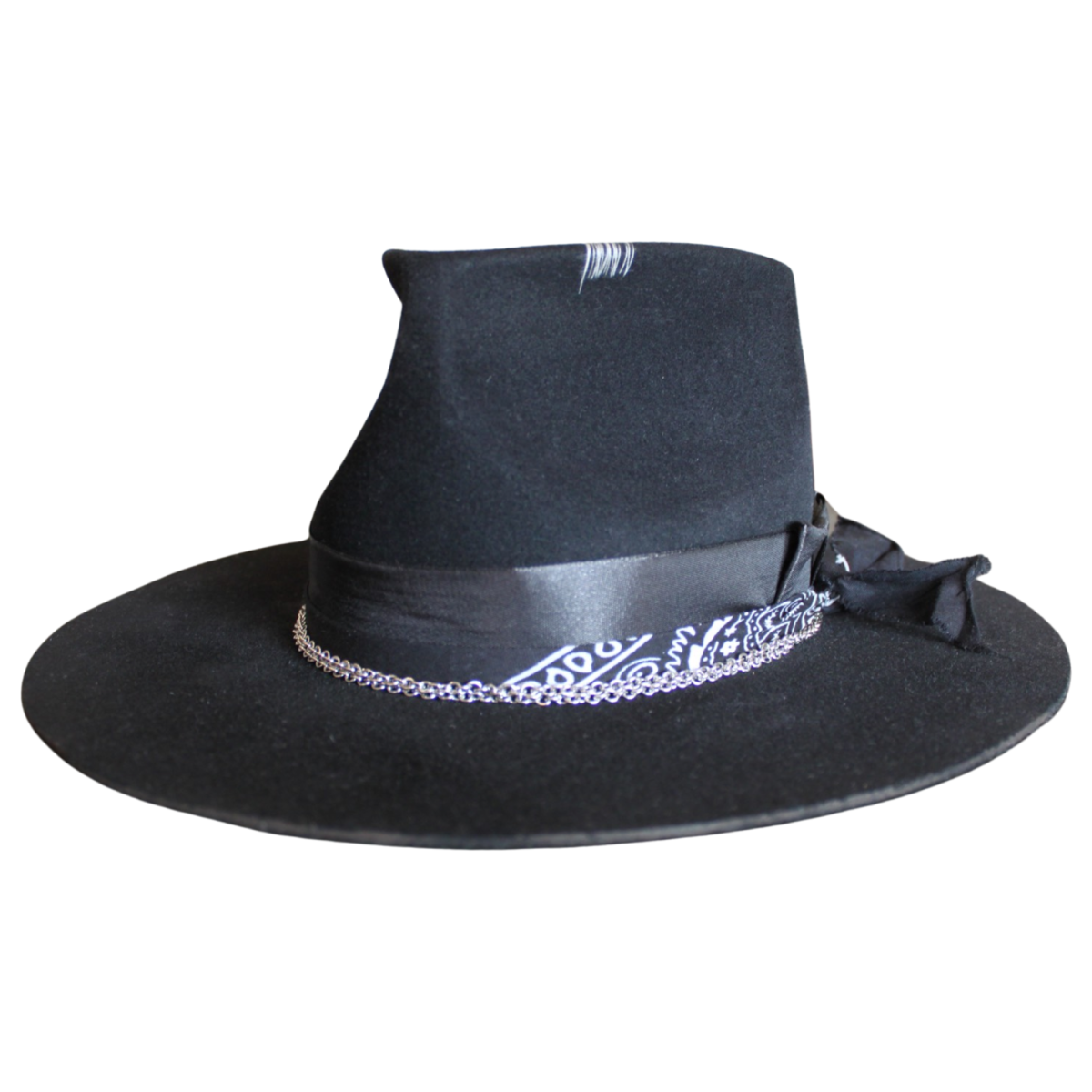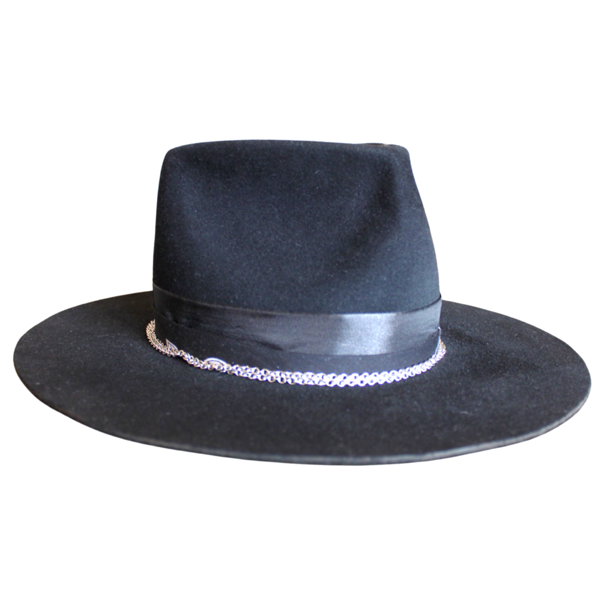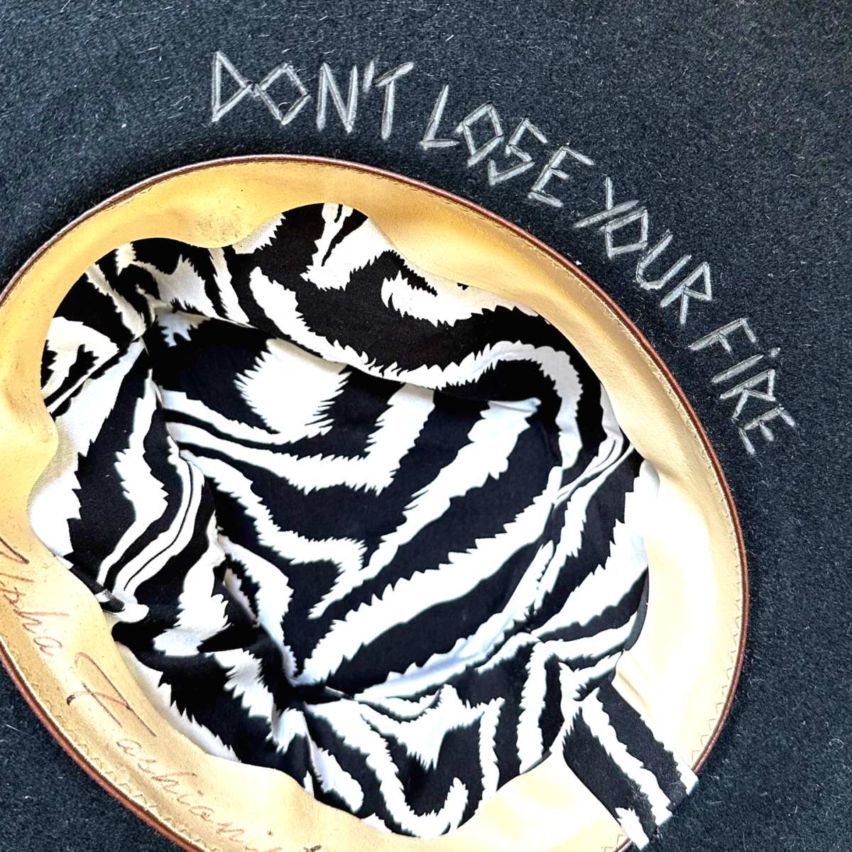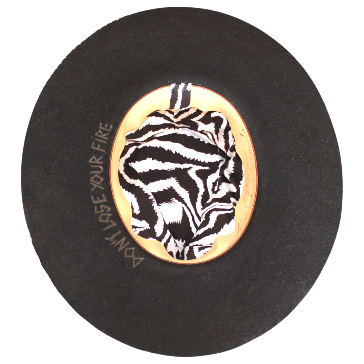 A limited-edition fedora radiating class, sophistication, and luxury. Pierre is one of our exclusive products, made with premium rabbit lapin in Ibiza, Spain. Pierre features the historic, recognizable AF silk-lined logo on the interior with a zebra pattern, alongside courageous advice: “don’t lose your fire.” This exclusive fedora is the perfect, awe-inspiring fashion accessory for your existing wardrobe. With contrasting silver and black on Pierre’s hat band, this classic fedora encourages elegance, indulgence, and timeless, comfortable style.